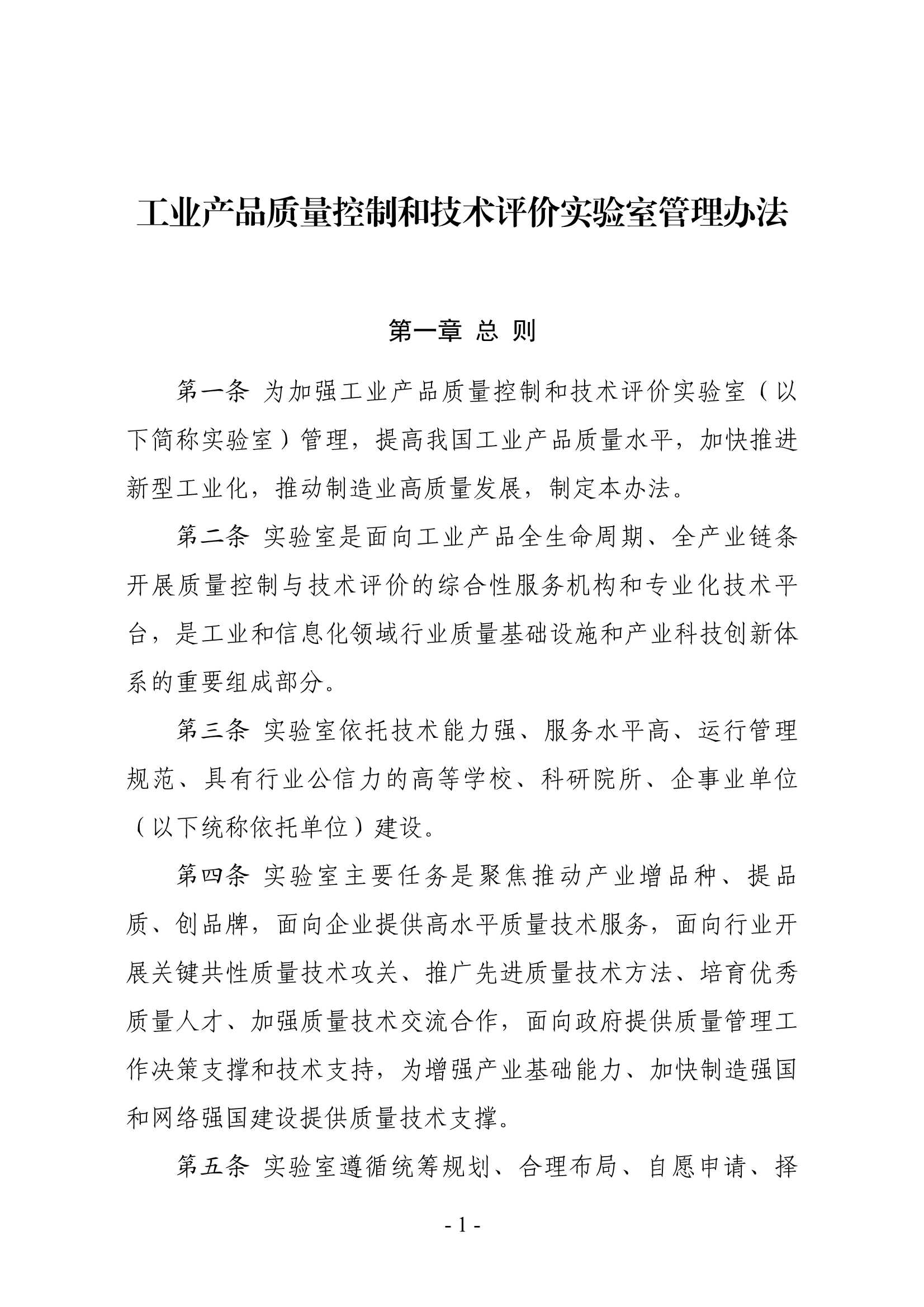 为加快推进新型工业化,推动制造业高质量发展,提高我国工业产品质量水平,我部修订了《工业产品质量控制和技术评价实验室管理办法》,现印发给你们,请认真抓好落实。